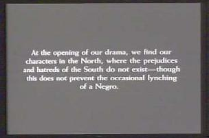 „A mi drámánk megnyitóján Északi karaktereket találunk, akik nem rendelkeznek a Déliek előítéleteivel és gyűlöletével – viszont ez a gondolkodás nem akadályozza meg a négerek esetenkénti meglincselését.”